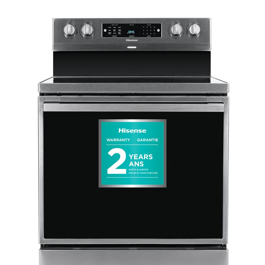 HISENSE 5,8 pi.cu. CUISINIÈRE ÉLECTRIQUE 30". Notre spacieuse cuisinière électrique autoportante HBE3501CPS en acier inoxydable est livrée avec une grande capacité de 5,8 cu. capacité de pi et des caractéristiques uniques comme la friture à l'air, la déshydratation, la cuisson des pizzas, le maintien au chaud, l'épreuve du pain, la cuisson par convection, le rôtissage, la cuisson surgelée et le gril - pour que vous puissiez cuisiner ce que vous aimez, comme vous l'aimez. La construction à convection véritable vous permet de cuisiner facilement des repas de taille familiale et si vous êtes multitâche, les cinq emplacements de cuisson comprennent un élément de 3300 watts pour une ébullition rapide jusqu'à 100 watts pour un mijotage lent. Ce four autonettoyant est même livré avec une option de nettoyage à la vapeur qui facilite le nettoyage. C'est une meilleure façon de cuisiner.Read More