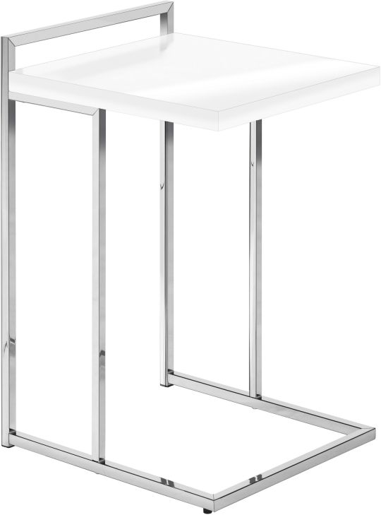 C-shaped accent table with a metal base that can be slid under a sofa or bed to keep items close by when you are seated